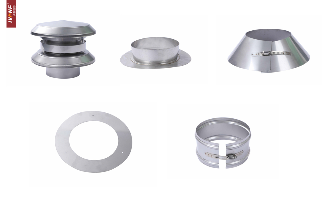 產(chǎn)品型號(hào) | 1). 煙管直管:1000mm、 500mm、300mm三種規(guī)格 2). 彎頭:45度、90度兩種,用于煙管需要轉(zhuǎn)彎的位置?;驹瓌t是轉(zhuǎn)1個(gè)彎,需2個(gè)45°彎頭。 3). 腰帶:用于固定、密封煙管的作用。原則是每1處煙管接口的地方用1個(gè)。 4). 支架:用于把煙管固定在墻上,穩(wěn)固作用。原則上每2米煙管的長(zhǎng)度使用1個(gè)。 5). 煙帽:又叫防雨帽,防止樹葉,鳥等物體進(jìn)入而堵塞煙管,另外是排煙作用。 |